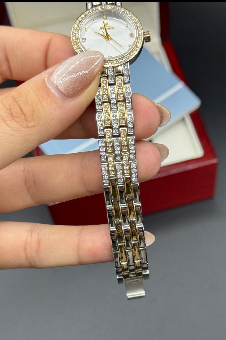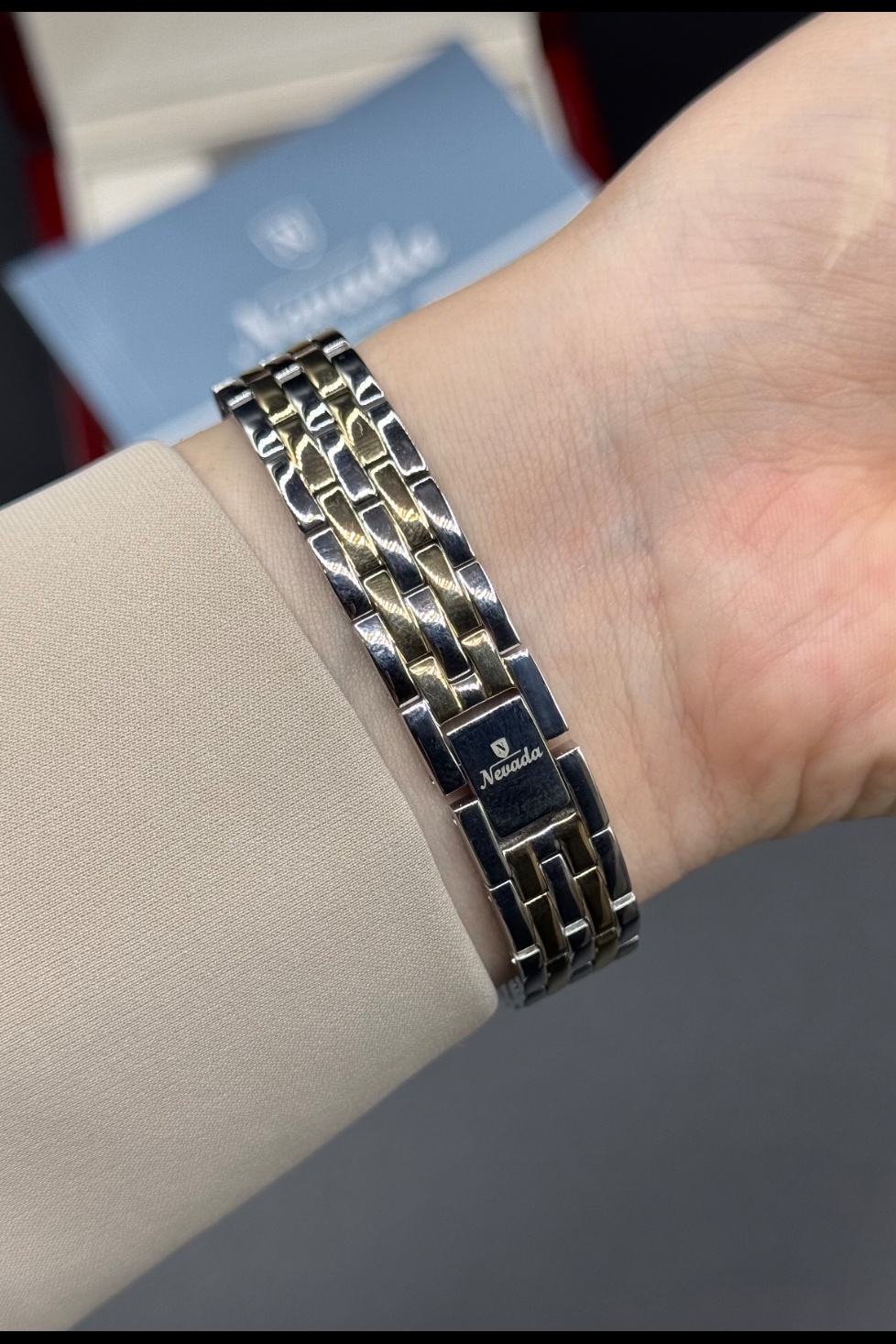 ساعت نگیندار یا ساده؟! مشخصات محصول: برند: NEVADA کلاسیک موتور ژاپنی منبع انرژی: باطری مناسب برای بانوان دارای نگینهای سواروسکی جنس بدنه: فول استیل جنس بند: فول استیل رنگ ثابت، ضد حساسیت جنس شیشه: کریستال، ضدخش ضمانت یکساله با احترام: ثبت سفارش: از طریق ارسال به آنلاین از طریق جهت حضوری: اصفهان، روبروی مسجد جامع، پاساژ مهدیه، فروشگاه اول، گالری ساعت و جواهر شاهین⌚