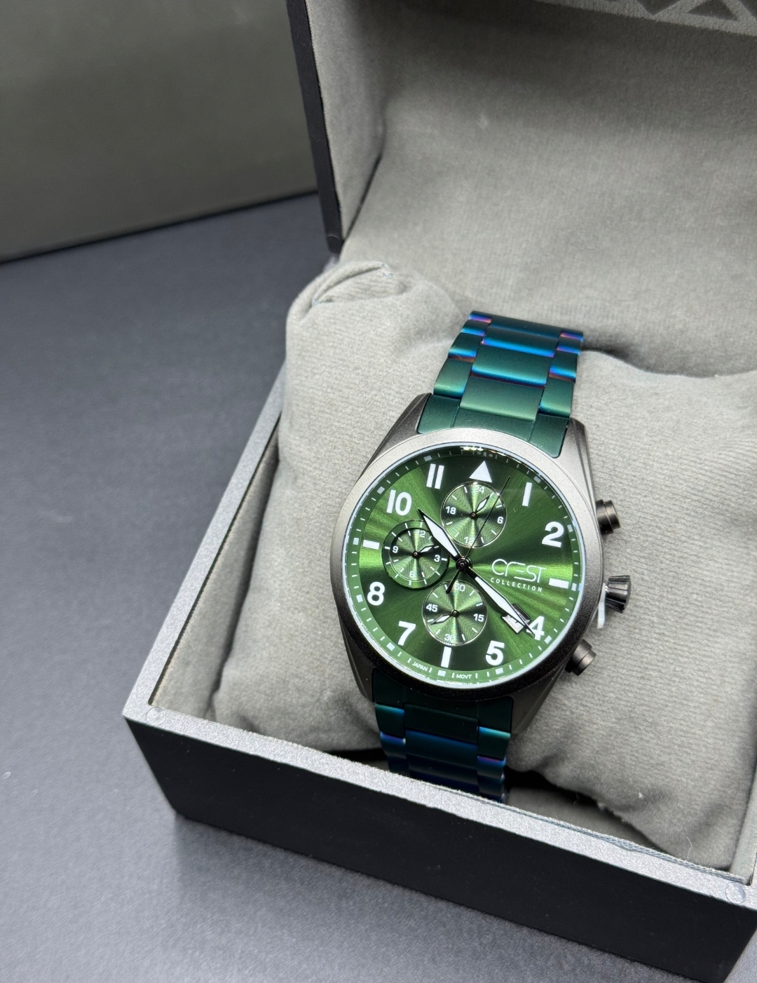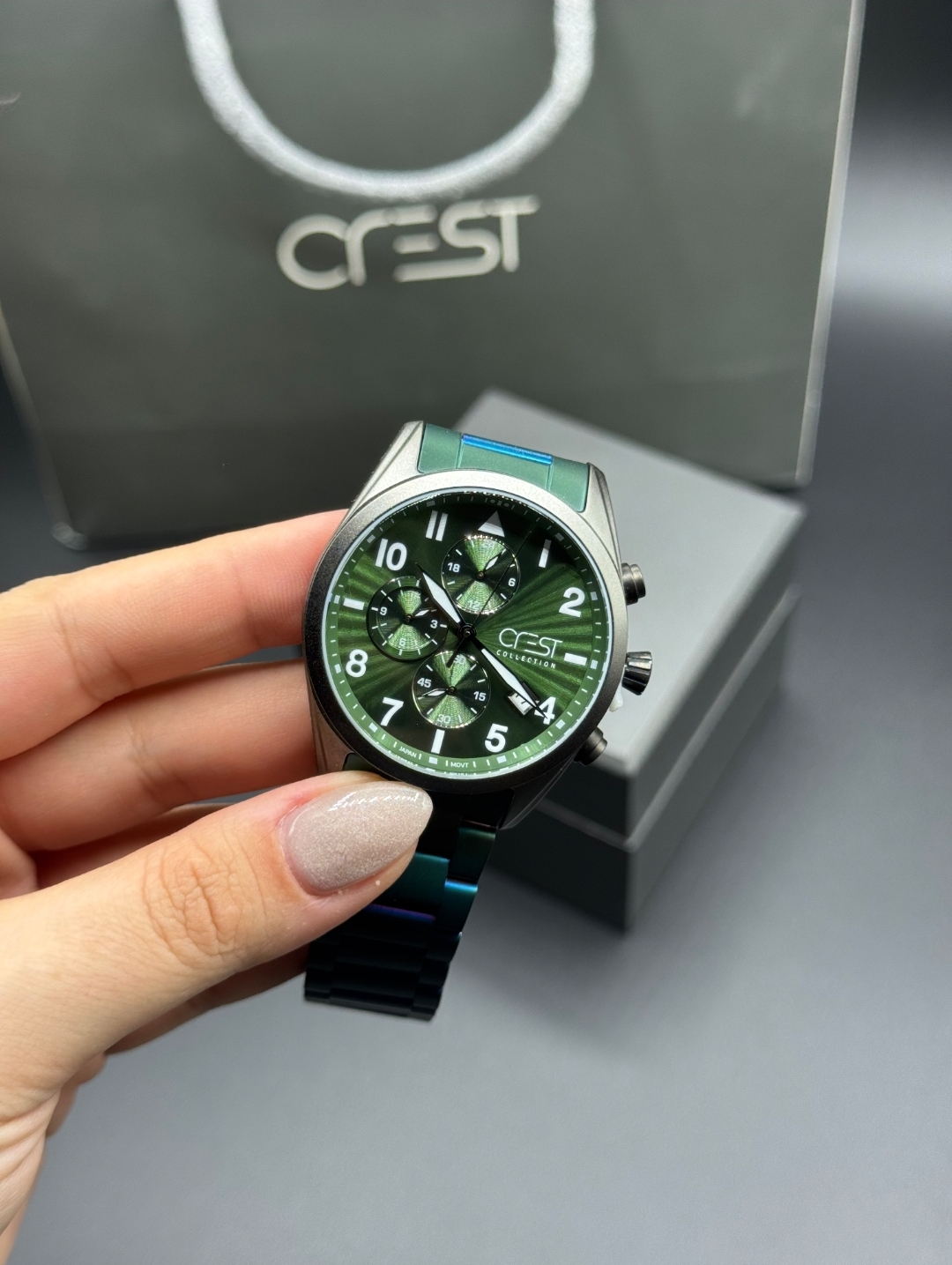 این رنگ انتخاب خاص پسندهاست مشخصات محصول: برند: CREST سه موتوره، کرنوگراف موتور ژاپنی مناسب برای آقایان جنس بدنه: فول استیل جنس بند: استیل مدل قفل: کلیپسی ضمانت ثبات رنگ بدنه و بند جنس شیشه: کریستال، ضدخش ضمانت یکساله با احترام: ثبت سفارش: از طریق ارسال به آنلاین از طریق جهت حضوری: اصفهان، روبروی مسجد جامع، پاساژ مهدیه، فروشگاه اول، گالری ساعت و جواهر شاهین⌚
