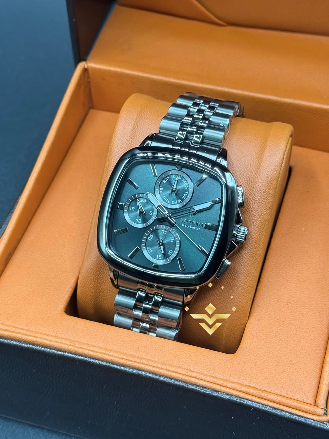 ساعت شیک با طراحی ایتالیایی، اورجینال، موتور ژاپنی، مناسب برای آقایان. جنس بدنه فول استیل و بند استیل، شیشه کریستال ضدخش، با ضمانت یکساله.