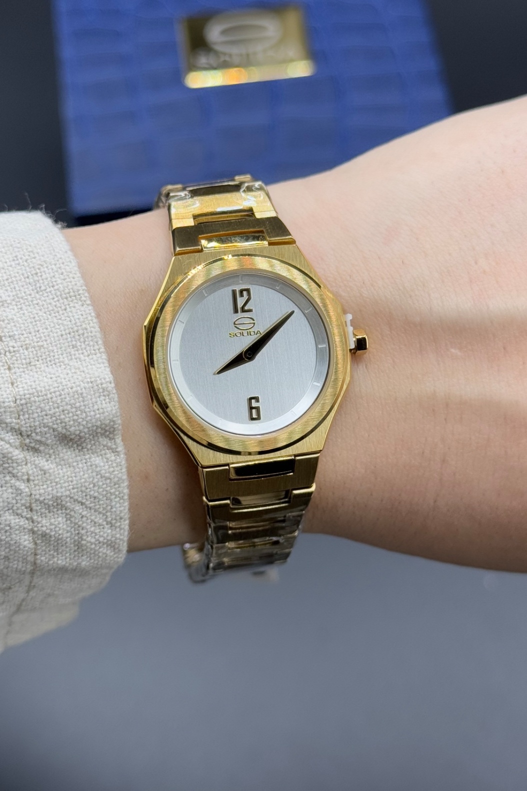 ظرافت رو دیدی؟! مشخصات محصول: برند: SOLIDA کلاسیک موتور ژاپنی منبع انرژی: باطری مناسب برای بانوان و آقایان جنس بدنه: فول استیل جنس بند: فول استیل رنگ ثابت، ضد حساسیت جنس شیشه: کریستال، ضدخش ضمانت یکساله با احترام: 4/200/ (هرعدد) ثبت سفارش: از طریق ارسال به آنلاین از طریق جهت حضوری: اصفهان، روبروی مسجد جامع، پاساژ مهدیه، فروشگاه اول، گالری ساعت و جواهر شاهین⌚